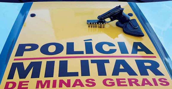 A pistola carregada com sete cartuchos foi localizada na cintura do suspeito, que já foi preso por homicídio. FOTO: Divulgação PM