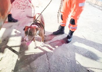 Um cão, da raça pitbull, que estava perdido há dias na avenida Altino Marques, no bairro Elvamar, em Governador Valadares ...