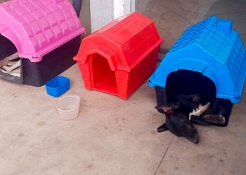 Um posto de gasolina, localizado no bairro Matinha, em Teófilo Otoni (MG), colocou casinhas para que cães de rua possam ...