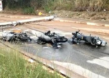 Uma carreta carregada com rolos de arames colidiu em um poste, nesta segunda-feira (10), no bairro Altinópolis, em Valadares. O ...