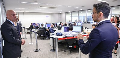 Pouco antes das 17h deste domingo (2), dia do primeiro turno das Eleições 2022, o presidente do Tribunal Superior Eleitoral (TSE), ministro Alexandre de Moraes, visitou a sala de totalização dos votos das Eleições Gerais de 2022, no edifício-sede da Corte, em Brasília.