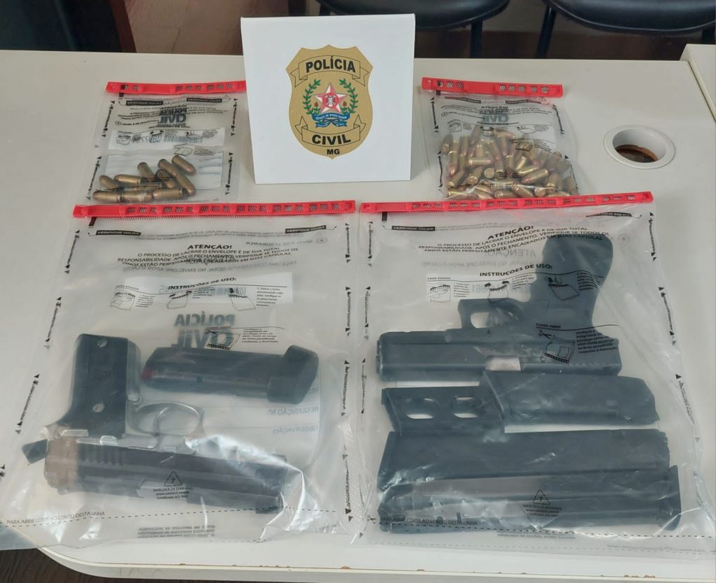 Também foram apreendidas duas pistolas semiautomáticas, uma Glock G17 (9mm) e uma PT940 (40), além de dois carregadores sobressalentes estendidos com capacidade para 30 cartuchos.