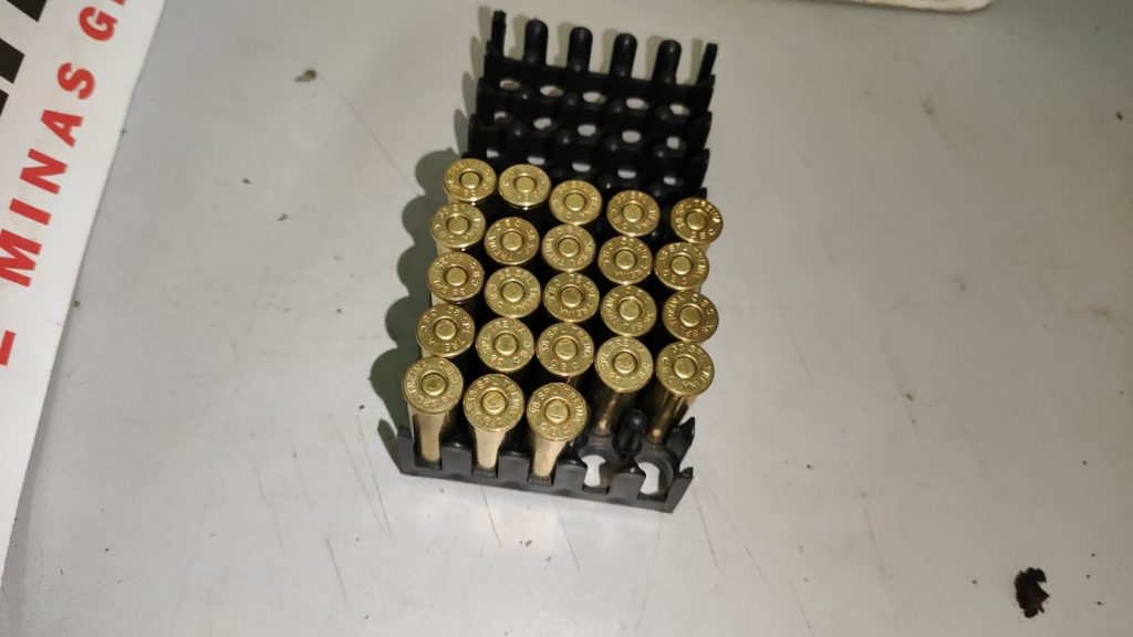 A planta estava ao lado do tanque de lavar roupas. Os militares encontraram as munições dentro de um guarda-roupa. Assim a Polícia prendeu o suspeito e o conduziu para a Delegacia de Polícia Civil de Governador Valadares.