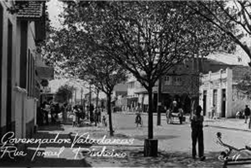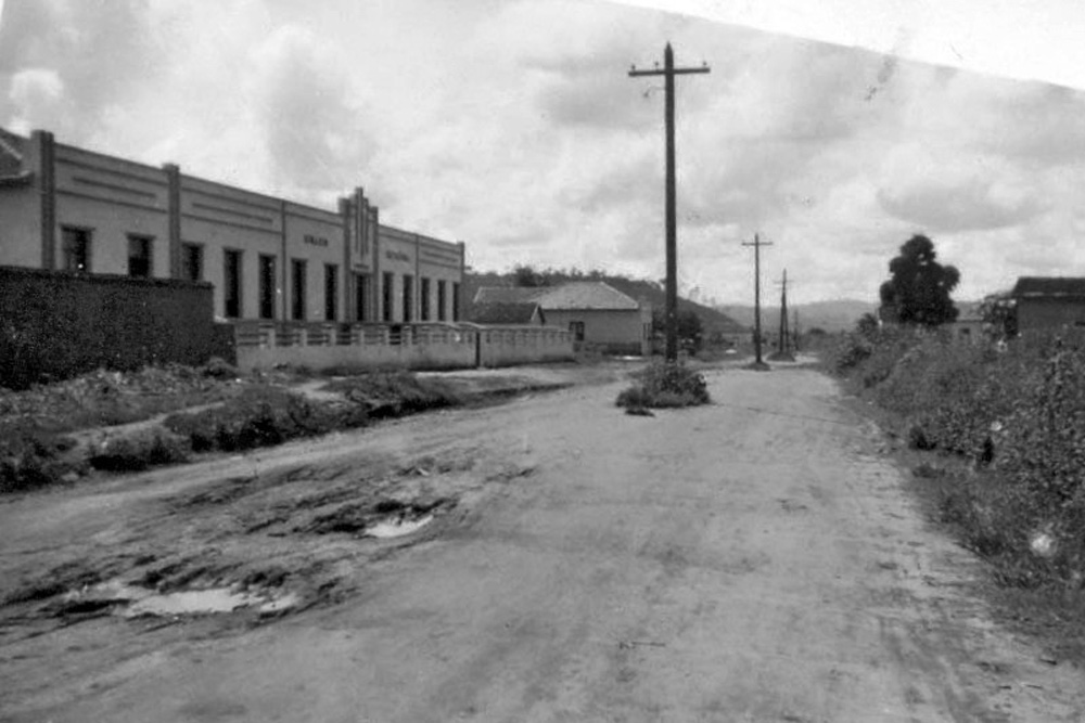 A Rua Israel Pinheiro, uma das principais da cidade, já foi assim. Em 1938, ano da emancipação política de Governador Valadares, ela não tinha nem calçamento. Na foto, o prédio à esquerda é o Colégio Ibituruna, na divisa do Centro com o Bairro Esplanada. O curioso é que a Rua Israel Pinheiro possuía os postes no meio da via.