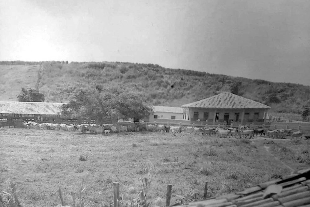 Imagem da sede da fazenda de Afonso Bretas Sobrinho, em 1940, onde hoje está a avenida JK. A fazenda ficava próxima à atual Rua Parajara dos Santos e Paschoal de Souza Lima. Ao fundo o morro onde atualmente fica o 6º Batalhão da Polícia Militar. O local onde ficava a fazenda hoje é conhecido como bairro Vila Bretas, um dos mais antigos e nobres da cidade. Além de muitas residências, o bairro é um importante polo comercial de Valadares, sendo a avenida JK uma das principais vias de acesso da cidade. Já à direita, a antiga sede da fazenda dos Carapina, na Rua Gentil Dias, no bairro Nossa Senhora das Graças. A imagem é de 1927.