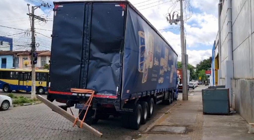 A carreta transportava papel higiênico. O motorista do veículo relatou que, ao fazer a conversão para entrar na Rua Luiz Lucciola, foi atingido na traseira pelo ônibus que seguia no mesmo sentido da via.