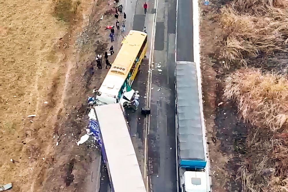 O caminhão, carregado de isopor, seguia sentido Teófilo Otoni, quando invadiu a pista contrária e atingiu frontalmente o ônibus, causando de imediato a morte dos condutores de ambos os veículos.