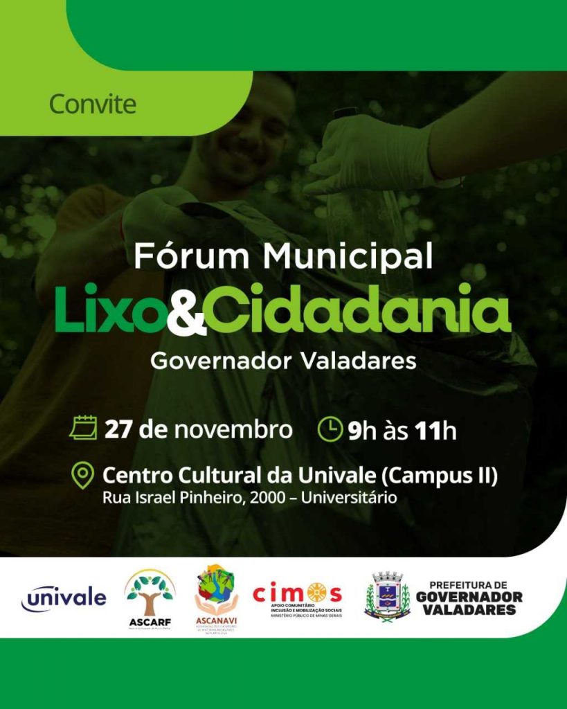 O Programa Lixo e Cidadania, criado pelo Ministério Público de Minas Gerais, é a base dessa iniciativa, que agora conta com a adesão da Prefeitura de Valadares, responsável pela coordenação e implantação do Fórum. O objetivo é fomentar políticas públicas voltadas para a transformação social e ambiental na região.