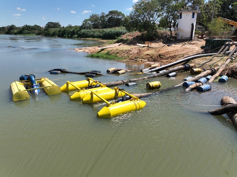 As bombas anfíbias são flutuantes e leves, podendo ser posicionadas em locais mais distantes da margem e em pontos mais profundos do rio. Essa flexibilidade permite que a concessionária busque áreas com maior disponibilidade de água para captação, garantindo maior estabilidade na operação. Além disso, os equipamentos podem ser recolhidos em épocas chuvosas, evitando o risco de serem arrastados por enxurradas. O motor da bomba fica submerso, o que aumenta a eficiência do processo.