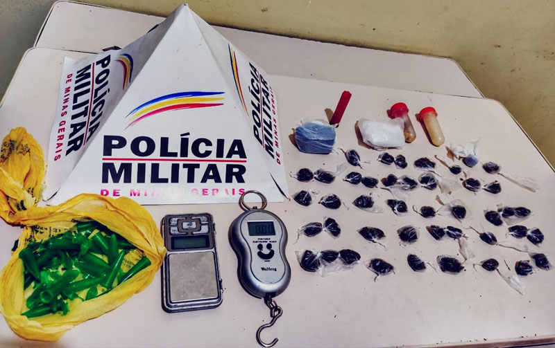 A Polícia Militar apreendeu, nessa quarta-feira (6), 43 buchas de maconha, um tablete grande de maconha, 2 balanças de precisão, 26 pedras de crack, um cartucho usado de calibre 28, em Timóteo.