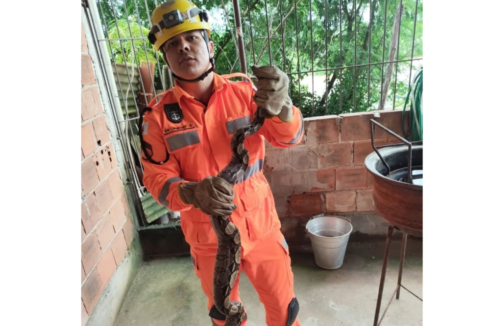 Bombeiros capturam jiboia no bairro Santa Rita em Valadares