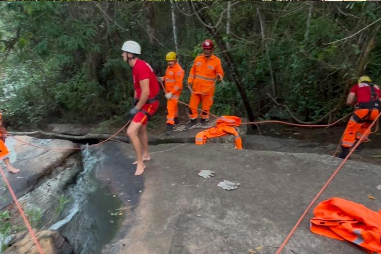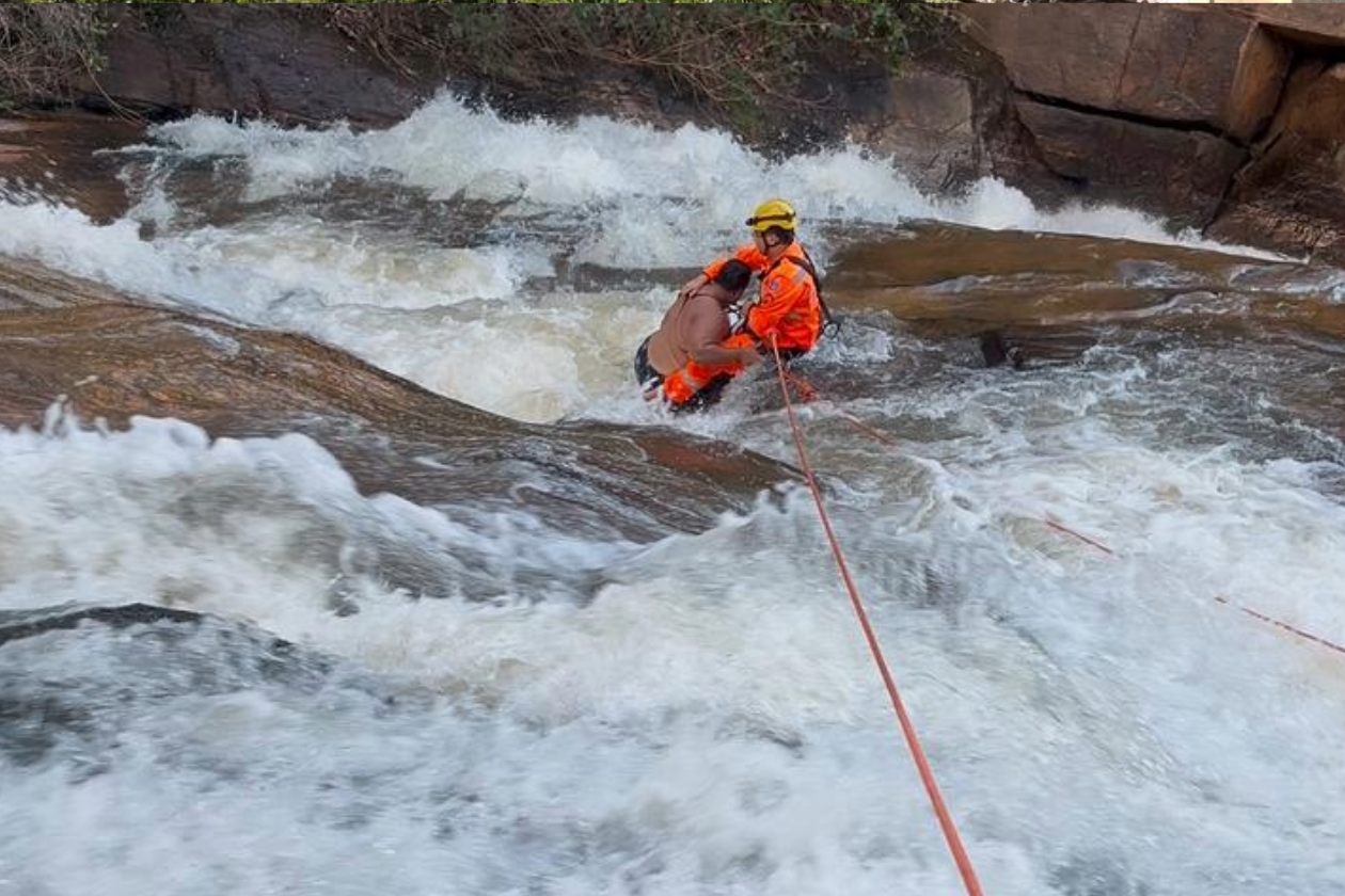 O homem estava se banhando na cachoeira quando perdeu o equilíbrio e escorregou aproximadamente 30 metros. Ele ficou preso em um local cercado por forte correnteza, em uma área de inclinação acentuada e terreno extremamente escorregadio. A previsão de chuva tornava a situação ainda mais delicada, aumentando os riscos para a vítima e a equipe de resgate.