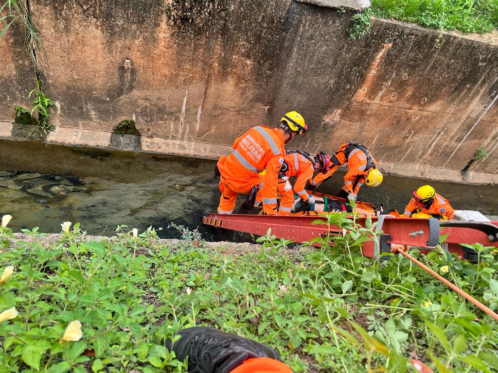 GOVERNADOR VALADARES – Duas equipes do 6° Batalhão de Bombeiros Militar (6° BBM) resgataram um idoso, de 68 anos, que caiu em um canal de água e esgoto. O fato ocorreu na Avenida Lisboa, no Bairro Grã-Duquesa, em Governador Valadares, na manhã desta segunda-feira (4).