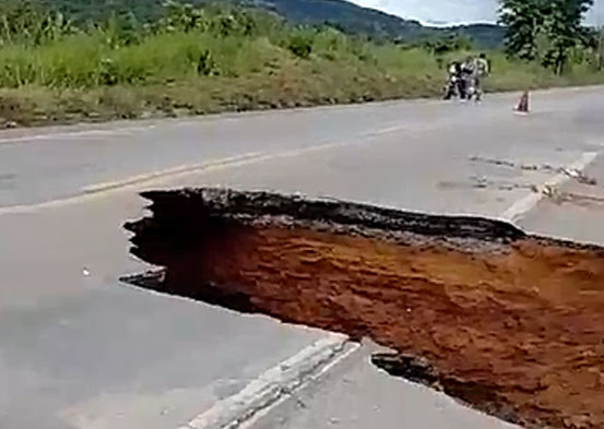 No momento, a rodovia está com interdição total no km 203. De acordo com o Departamento Nacional de Infraestrutura de Transportes, o DNIT, o rompimento deve-se ao aterro da rodovia ter cedido em função das fortes chuvas que atingiram a região durante a madrugada.
