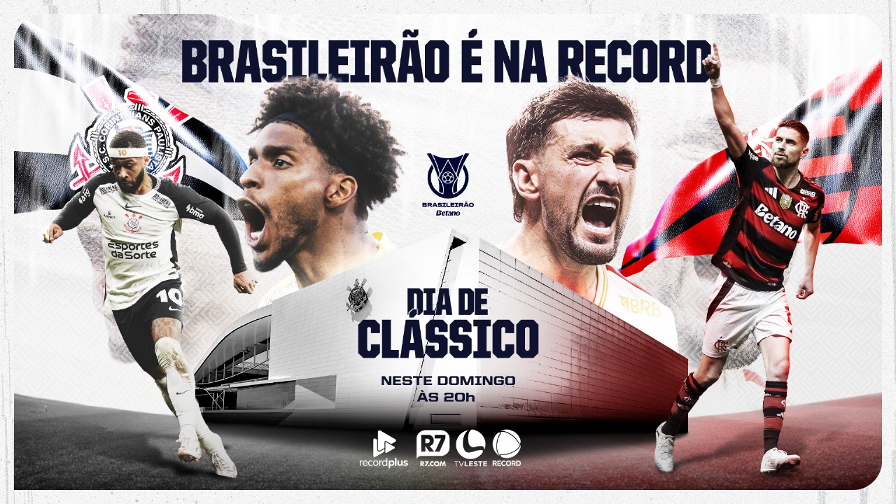 GOVERNADOR VALADARES – Neste domingo (28), às 20h, a TV Leste — afiliada da RECORD no Leste e Nordeste de Minas Gerais — transmite ao vivo o clássico entre Corinthians e Flamengo, direto da Neo Química Arena, em São Paulo (SP), pela 25ª rodada do Campeonato Brasileiro Série A.
