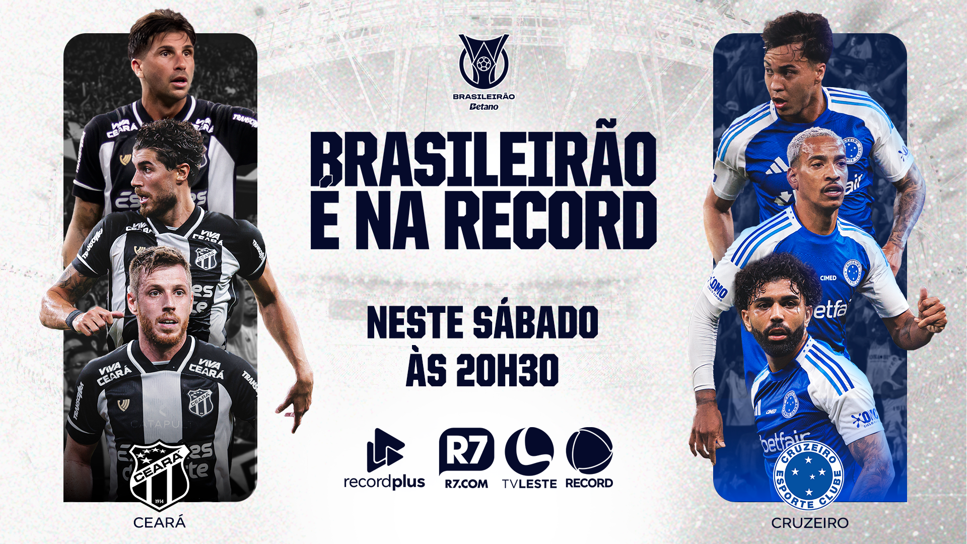 GOVERNADOR VALADARES – Novembro está acabando, mas ainda tem jogo do Brasileirão na tela da TV Leste, afiliada RECORD, com transmissão no R7.com e RecordPlus. Neste sábado (29) tem Ceará x Cruzeiro, às 20h30, na Arena Castelão, em Fortaleza (CE), um jogão para todo Leste e Nordeste de Minas Gerais. O confronto é pela 36ª rodada da Série A do Campeonato Brasileiro.