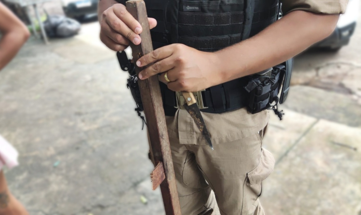 No local, os militares apreenderam a faca e o bastão de madeira. Além de encaminhar os dois envolvidos para a Delegacia da Polícia Civil (PC) de Governador Valadares.