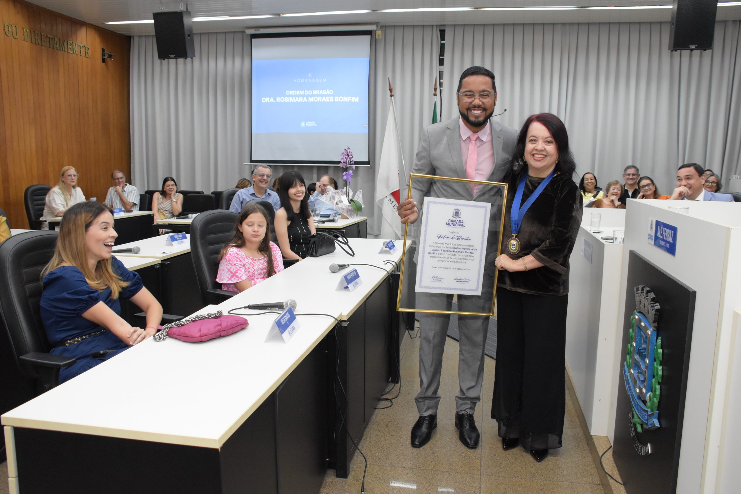 GOVERNADOR VALADARES – A Câmara Municipal de Governador Valadares concedeu, na sexta-feira (15), a Ordem do Brasão Municipal à médica e professora Rosimara Moraes Bonfim, em reconhecimento à sua contribuição para a saúde e a educação no município. A honraria foi proposta pelo vereador Dandan Cesário.