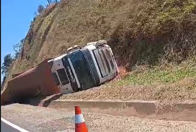 Com o tombamento, parte da carga se espalhou pela rodovia. Apesar do impacto, o tráfego seguiu com fluidez e não houve necessidade de interdição parcial da pista, o que evitou maiores transtornos para os motoristas que passavam pelo trecho.
