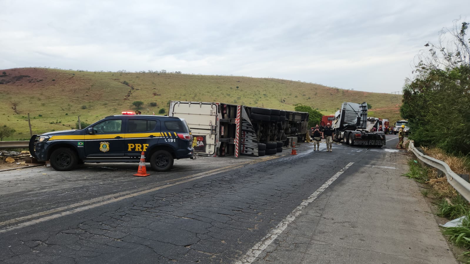 A carreta, no entanto, permaneceu tombada no local. O que exigiu fiscalização da Polícia Rodoviária Federal (PRF) para manter a segurança do tráfego de condutores na via.
