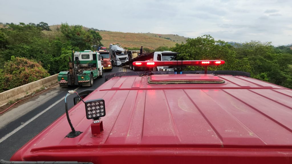 “É uma carreta carregada de frios, parece frangos e condimentos. Ela tombou na curva aqui do Distrito Industrial, próximo ao bairro Penha. A vítima já foi conduzida pelo Samu. Agora a PRF está fazendo a [fiscalização] do trânsito e a guarnição [dos Bombeiros] está fazendo a precaução e prevenção de acidentes. Tanto da parte de acidente quanto de incêndio. Tem muito combustível vazando na área aqui”, informou a equipe dos Bombeiros.