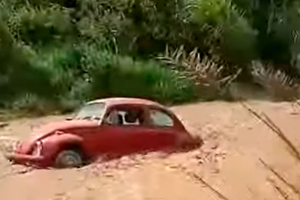 Na tarde dessa quarta-feira (11), ocupantes de um Fusca passaram por momentos de muita tensão próximo a cidade de Conselheiro Pena. O motorista do carro e dois passageiros iam por uma estrada de terra sentido ao município quando foram surpreendidos por uma cabeça d’água que descia por um córrego. Com o volume da água, o carro ficou submerso quase por completo. Mas apesar do susto, ninguém se feriu.