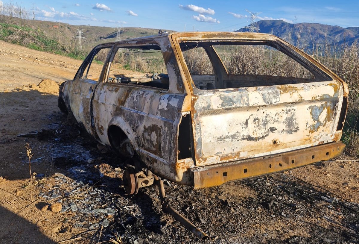 A consulta ao número do chassi permitiu identificar o automóvel e confirmar que se tratava do mesmo veículo furtado cinco dias antes. Os militares constataram ainda que as rodas, os bancos e a bateria haviam sido retirados antes de o carro ser incendiado. A carcaça foi removida e encaminhada ao pátio credenciado.