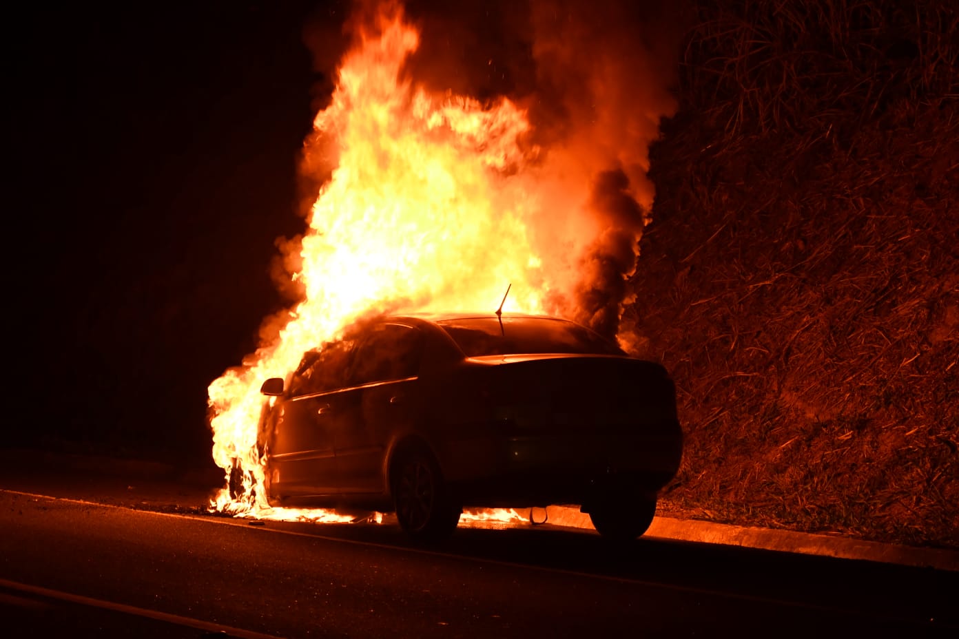 A mulher contou que, assim que viu a fumaça, encostou o carro no acostamento e as chamas começaram.