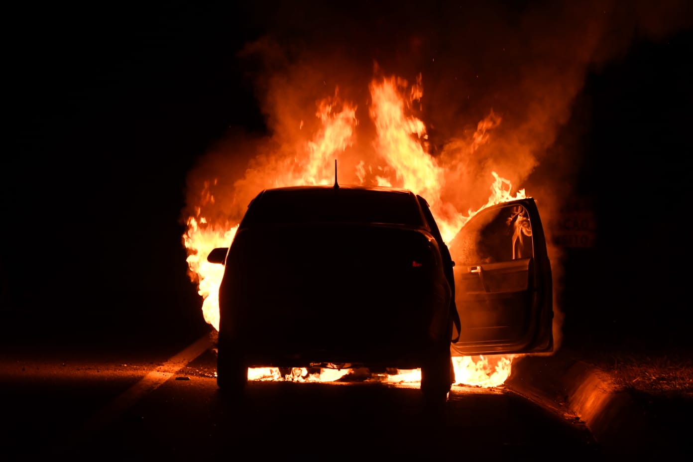 Além do carro, que ficou totalmente destruído, o incêndio consumiu um óculos de grau, roupas, a CNH da condutora e documentos do veículo. Felizmente, os danos foram apenas materiais
