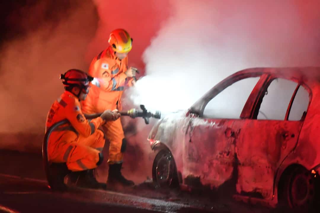 Ao chegar ao local, os bombeiros encontraram o carro já consumido pelas chamas. A princípio o incêndio teria começado sob o capô do veículo, um VW Polo Sedan. A suspeita é que tenha ocorrido algum problema na parte elétrica do carro.