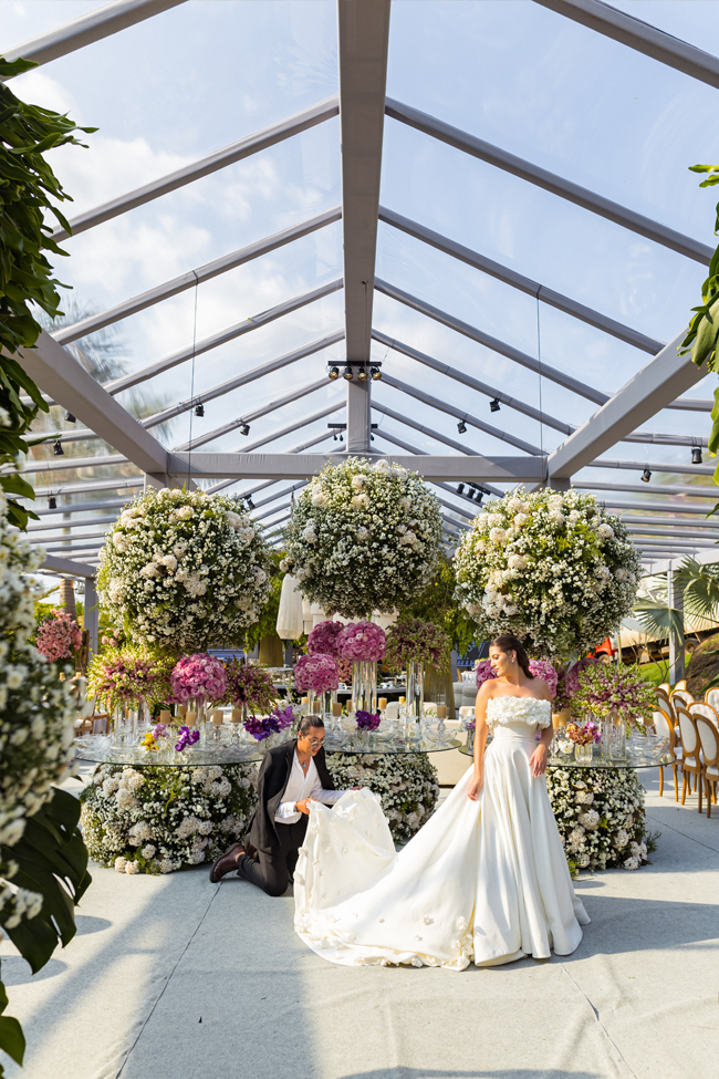 A cerimônia foi realizada na deslumbrante Fazenda Cachoeira Boutique, um verdadeiro refúgio cercado por cachoeiras, que proporcionou um cenário idílico e inesquecível para o grande dia do casal. A beleza natural do local foi complementada pelo toque sofisticado da assessoria de eventos, sob a liderança do renomado Wesley Schmidt, conhecido por sua excelência em criar celebrações de alto padrão.