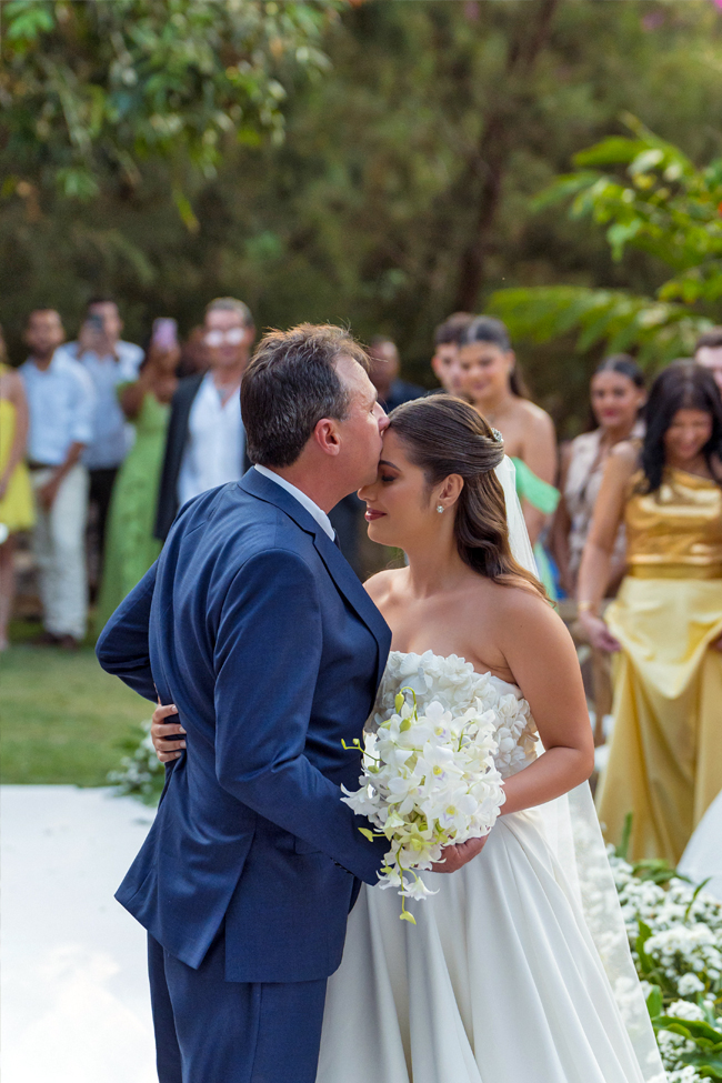 As palavras emocionantes dos pastores Antônio Carlos e Lucinho Barreto marcaram a cerimônia religiosa, trazendo uma mensagem de fé e bênçãos para esta nova fase do casal. Um dos momentos mais tocantes foi a entrada angelical da pequena Manu, netinha de Wallace e Rosana, filha de Larissa Miranda e Pedro Donato, que, como daminha de honra, encantou a todos os presentes.