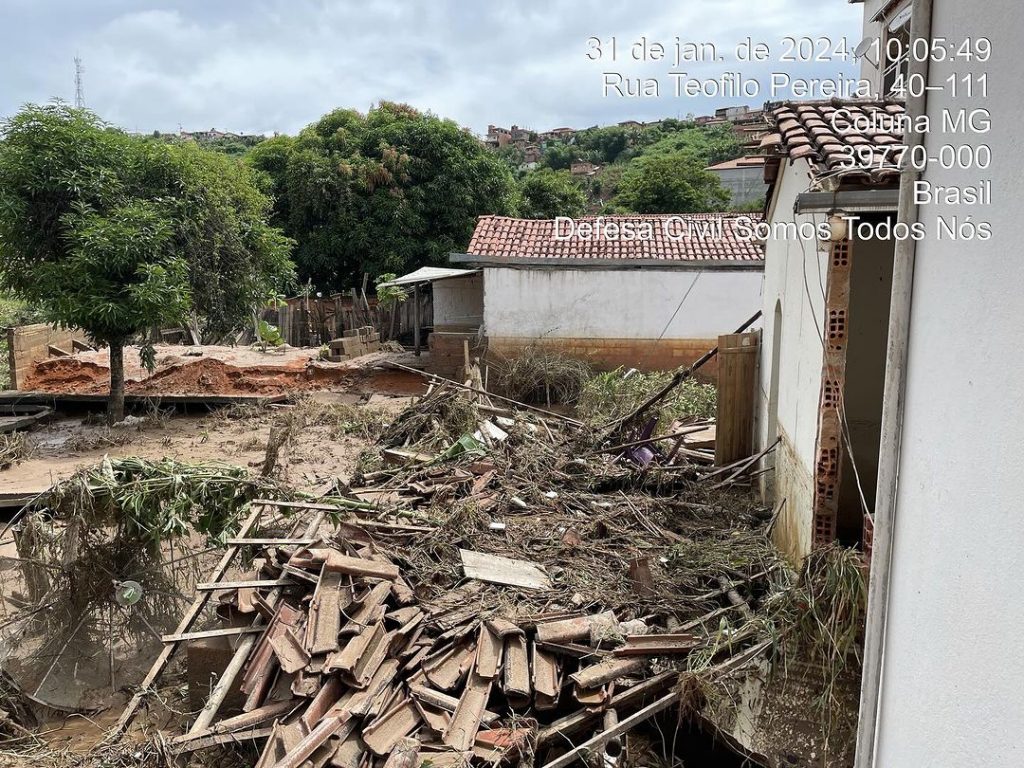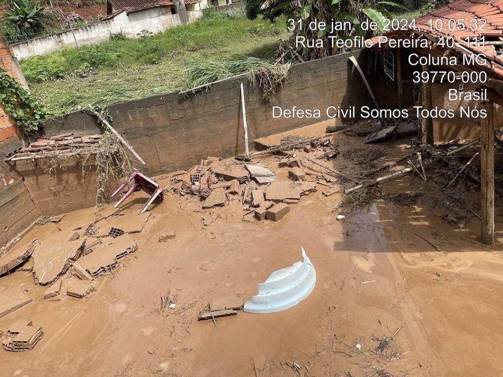 COLUNA – Uma forte chuva que caiu na madrugada dessa quarta-feira (31) causou muitos estragos em Coluna, município do Vale do Rio Doce. A água invadiu a cidade, derrubou muros e causou muitos prejuízos aos moradores.