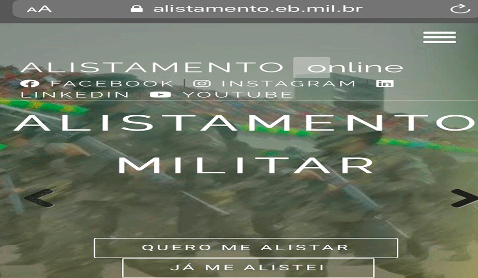 Vai até o dia 30 de junho o prazo do alistamento militar obrigatório para os cidadãos do sexo masculino que completam 18 anos neste ano. Por conta da pandemia de Covid-19, a preferência é de que o processo seja feito pelo site www.alistamento.eb.mil.br.