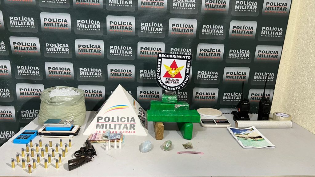 A partir disso, as equipes policiais retornaram à casa e abordaram outras quatro pessoas, entre elas o alvo da denúncia. Durante as buscas no local, a Polícia Militar encontrou armas de fogo, máquinas de cartão, drogas, balança de precisão, entre outros itens relacionados ao tráfico de drogas.