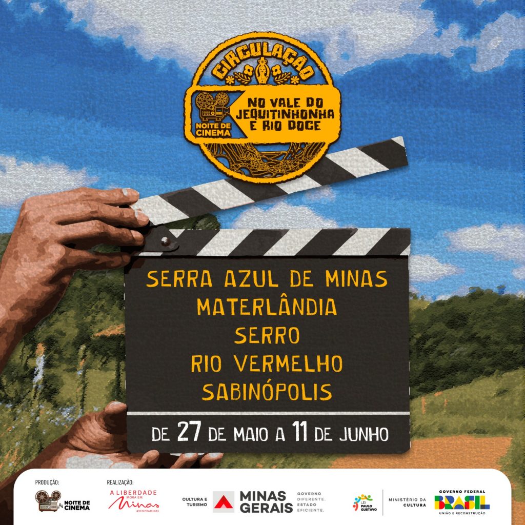GOVERNADOR VALADARES – Entre os dias 27 de maio e 11 de junho, o projeto Circulação Noite de Cinema vai invadir os espaços públicos nos vales do Rio Doce e Jequitinhonha. Cinco cidades vão ser contempladas com sessões abertas ao público e de classificação livre. De segunda (27) a quarta-feira (29), a programação estará presente em Serra Azul de Minas.