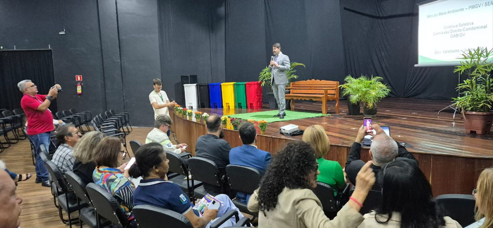 Encerrar o Mês do Meio Ambiente falando sobre lixo é simbólico — e estratégico. No último dia 25 de junho, o Teatro Atiaia foi palco de um evento que marcou uma virada de chave para Governador Valadares: o lançamento da campanha “Coleta Seletiva Solidária”, promovida pela Comissão de Direito Condominial da 43ª Subseção da OAB/MG, Comissão de Direito Condominial da OAB de Minas Gerais, em parceria com a Univale e com o apoio direto da Secretaria Municipal de Meio Ambiente (SEMA).