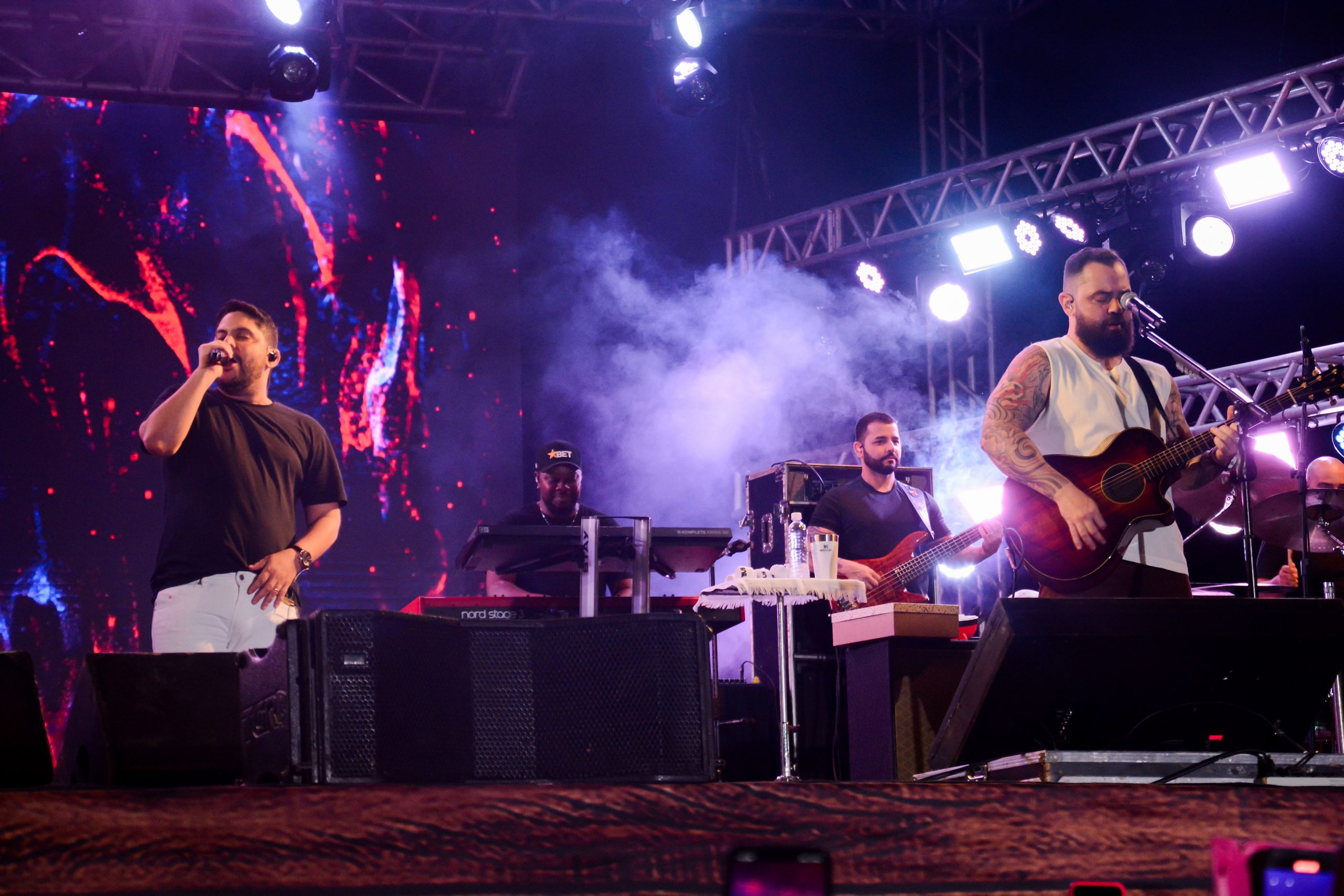 Os cantores de Itumbiara (GO) iniciaram o show por volta de 00h50, com o hit “Todo Seu”, de 2022. A cada passagem de música, os fãs ficavam ainda mais extasiados na plateia. A lista de sucessos da dupla parecia infinita, contudo, algumas faixas, como: “Tem Nada a Ver”, “Louca de Saudade”, “O Mundo é Tão Pequeno”, “Aí Já Era”, “Amo Noite e Dia” e “Onde Haja Sol” fizeram com que o Parque de Exposições fosse tomado por uma só voz.