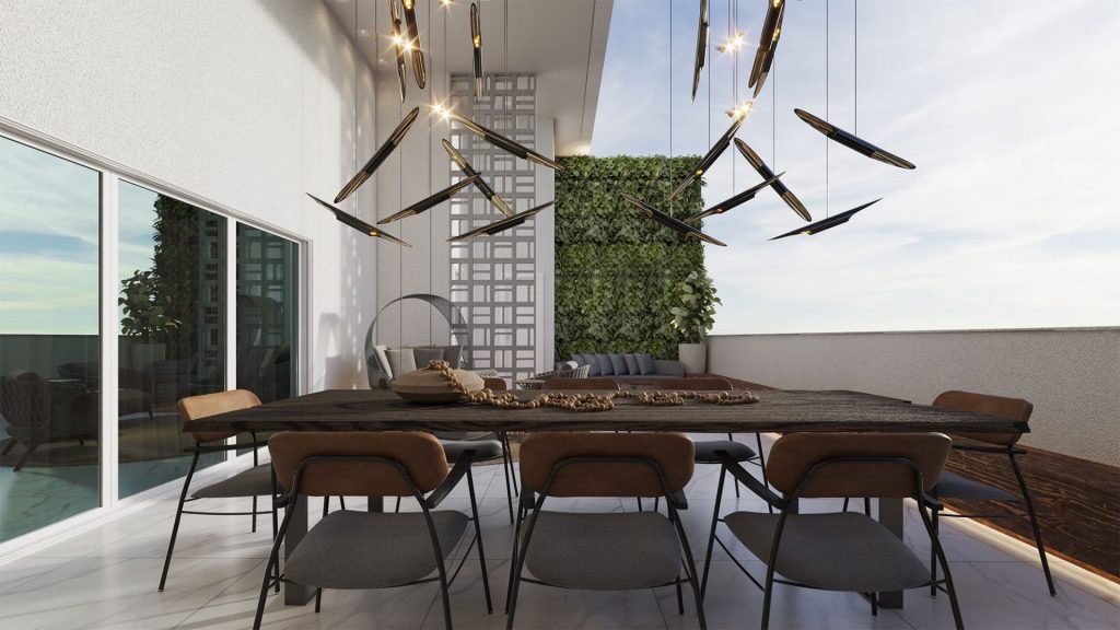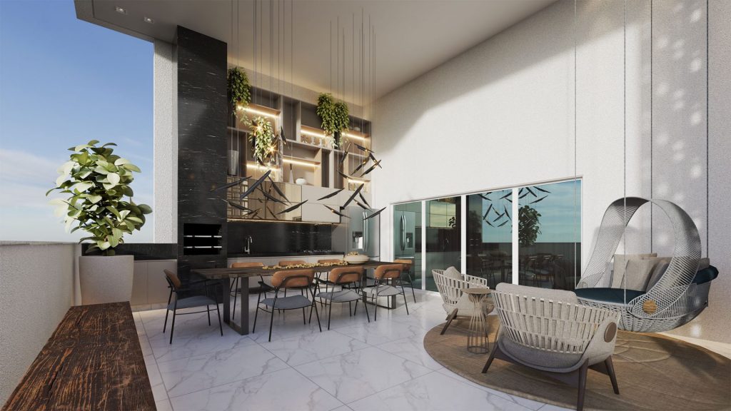 O prédio terá hall totalmente decorado, varanda gourmet em todos os apartamentos e uma cobertura linear com o padrão WR, que alinha a distribuição dos ambientes com conforto e qualidade de vida.