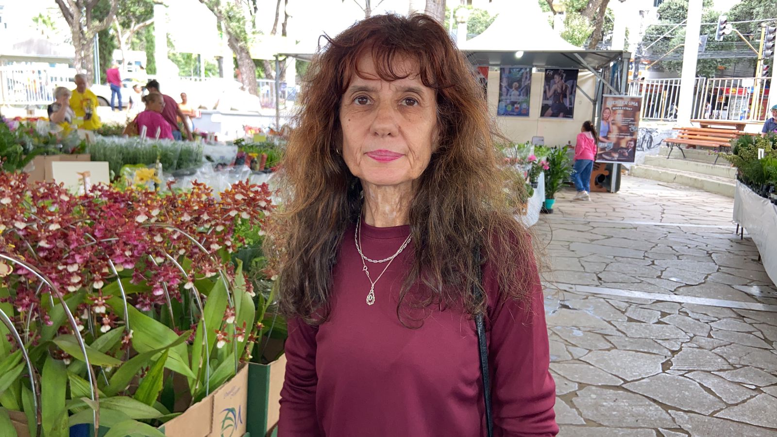 “Minha mãe e eu somos apaixonadas por plantas e todo ano a gente visita e compra plantas. Já temos muitas em casa, mas sempre cabe mais uma. Este ano, além da minha mãe, eu vim com uma tia e um primo que queriam dar uma volta na cidade. Vou voltar para comprar mais depois, mas hoje vou levar só uma orquídea, que minha mãe ama”.