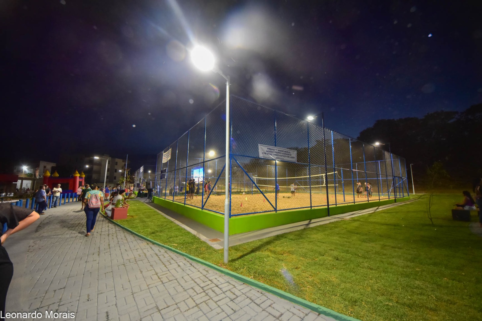 A princípio são duas quadras poliesportivas de areia, pista de caminhada em todo o entorno e academia voltada para o público da terceira idade. No complexo também há playground, bancos, paisagismo com ampla área verde e tudo com iluminação de LED.