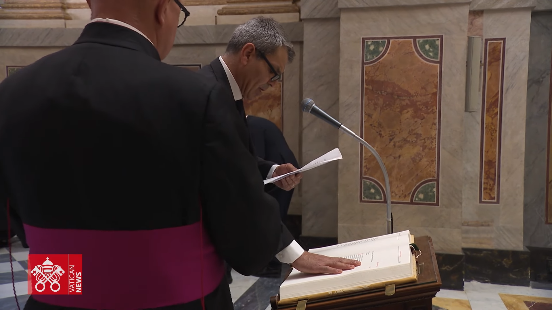 A cerimônia foi presidida pelo cardeal camerlengo Kevin Joseph Farrell, com a participação de dois protonotários apostólicos como testemunhas. Todos os participantes foram orientados sobre o significado do compromisso e assinaram o termo do juramento diante das autoridades eclesiásticas.