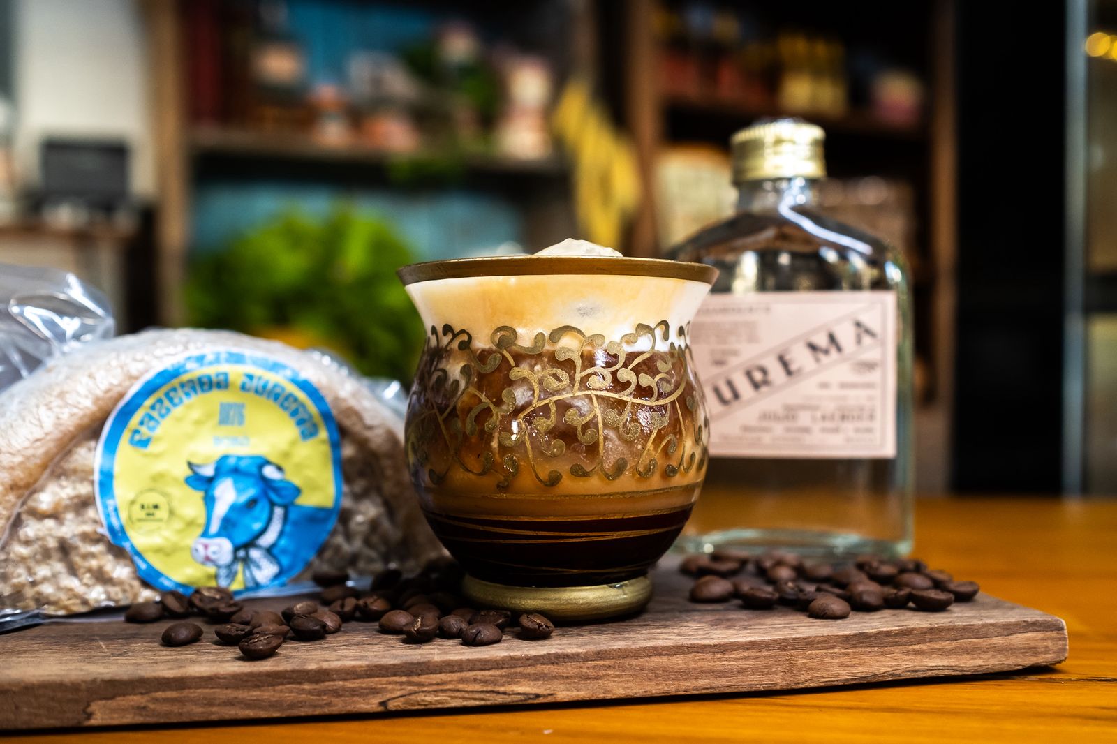 Café coado, creme de leite e licor de doce de leite — doce na medida, com perfume de fazenda.