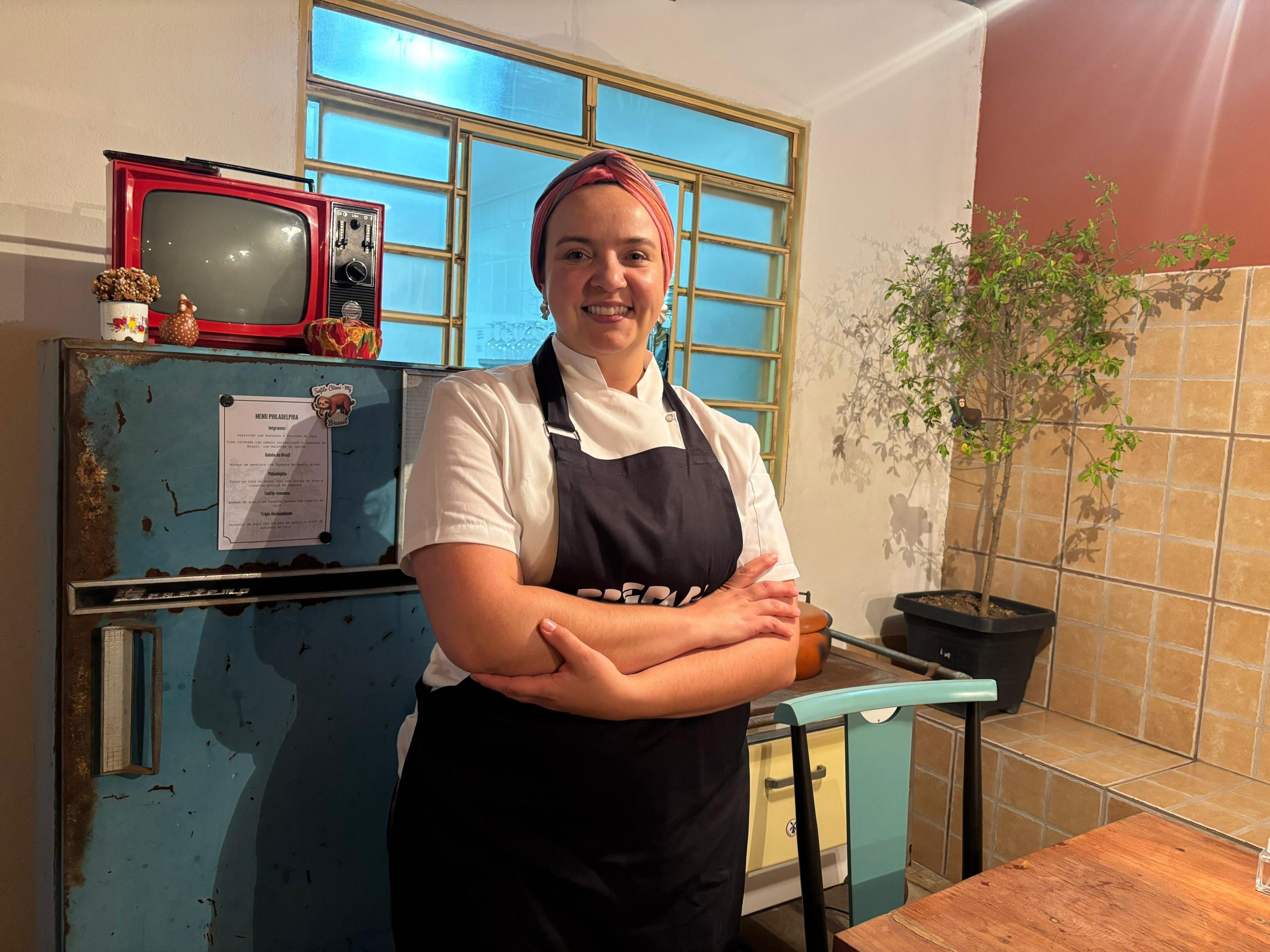 “A nossa cozinha é pequena, mas isso também é a nossa identidade. Gostamos do simples, feito com capricho. Criamos o sanduíche Banca 76, que homenageia o ano de registro da fazenda da família, em 1876 — e que, no ano que vem, completa 150 anos. Ele traz carne de porco e nosso queijo, remetendo ao Mercado Municipal. Já o drink Talagada é inspirado no meu avô, com sabores que lembram a roça, o café e o creme de leite”, conta a chef Dora Laender.