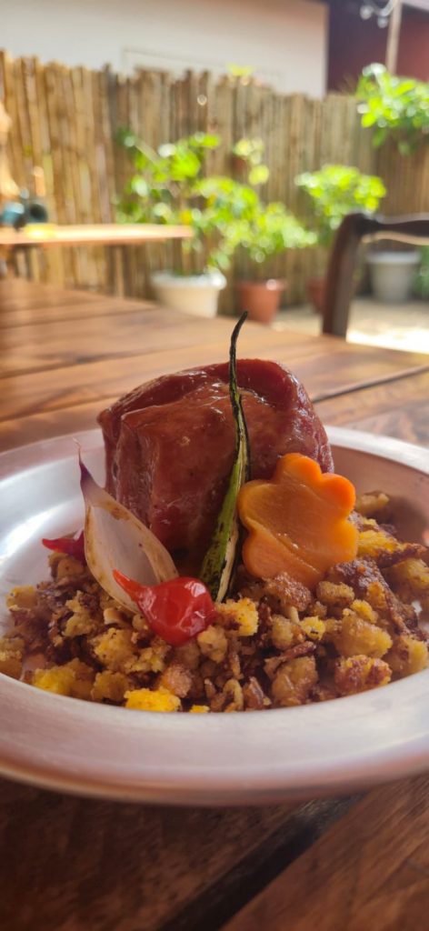 O Matuta Cozinha segue a filosofia slow food e trabalha com ingredientes da terra, valorizando a cultura alimentar local. Seu menu degustação conta com cinco tempos — canapés, entrada, prato principal, sobremesa e um prato extra para “limpar” o paladar.