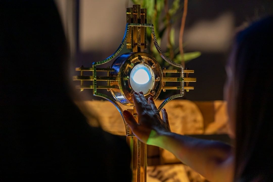 Para a Igreja Católica, onde está a Eucaristia, ali está a demonstração material de Jesus Cristo; agora ressuscitado. “E, tomando o pão, e havendo dado graças, partiu-o, e deu-lhes, dizendo: Isto é o meu corpo, que por vós é dado; fazei isto em memória de mim” (Lucas 22:19).
