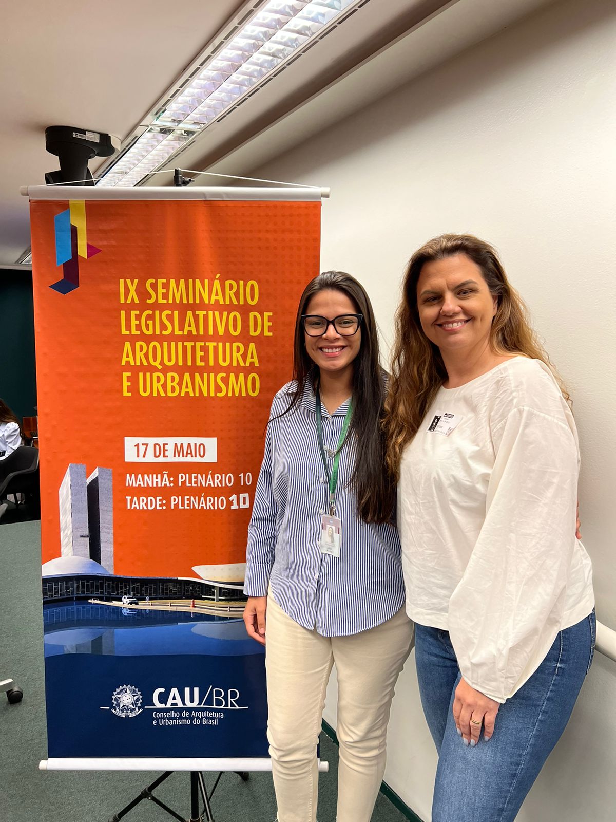 O 9º Seminário Legislativo de Arquitetura e Urbanismo foi realizado em Brasília, no dia 17 deste mês. Além de Ilara Duran, também esteve presente a aluna Nataly Maier. “Ela é do primeiro período, está na segunda graduação e já está interessada nos assuntos de Arquitetura”, detalhou a professora.