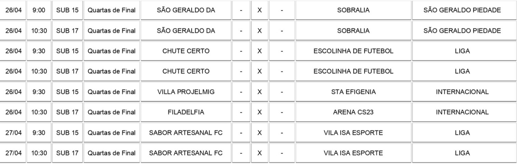 Confira a tabela de jogos para os dias 26 e 27 de abril