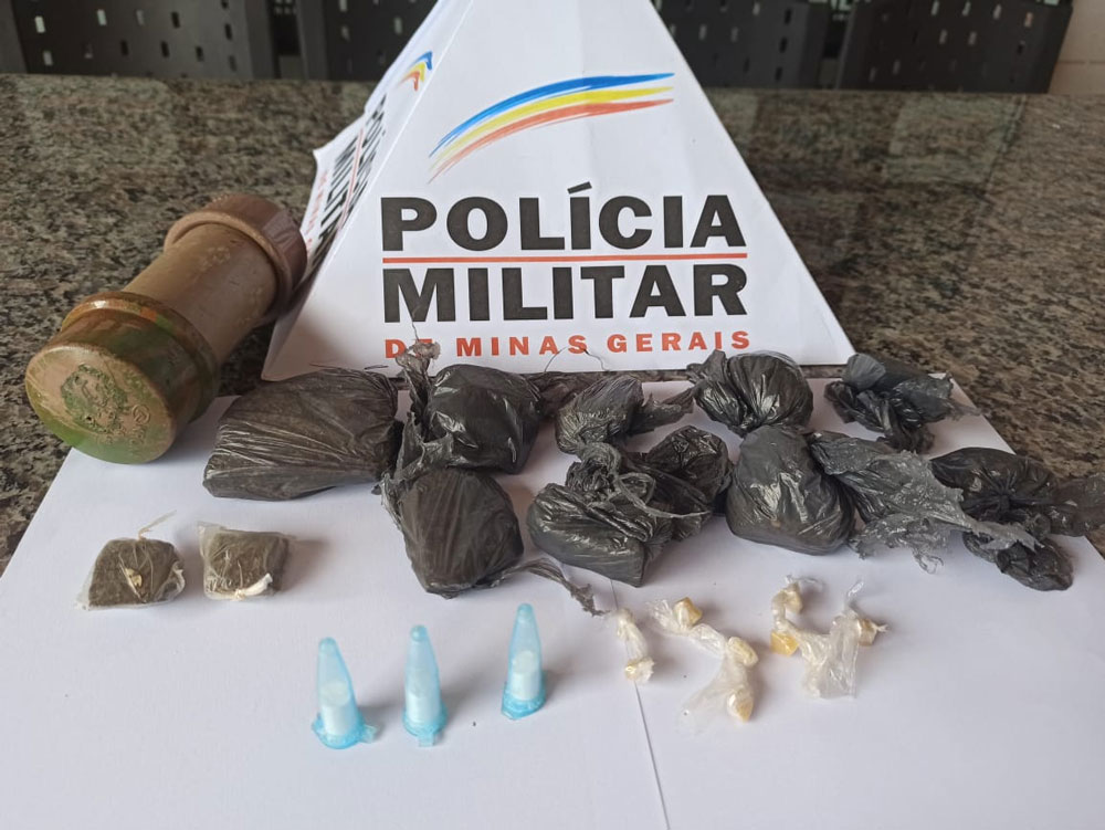 Uma denúncia anônima nessa quarta-feira (8) informou que um homem teria enterrado certa quantidade de drogas debaixo de uma plantação de mamonas em um terreno baldio, na rua Angico, no bairro Aparecida do Norte. Os militares compareceram ao local e, após busca no local, foram localizados nove tabletes de maconha, duas buchas de maconha, três pinos de cocaína e oito pedras de crack.