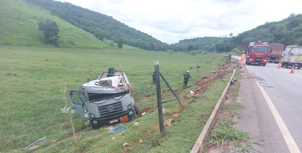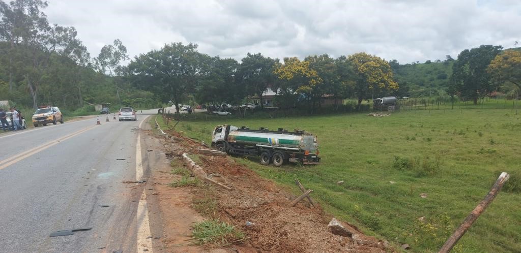 Com o impacto do acidente, o caminhão saiu para a lateral da rodovia. O mesmo aconteceu com a van, que antes de sair da pista também chegou a tombar.